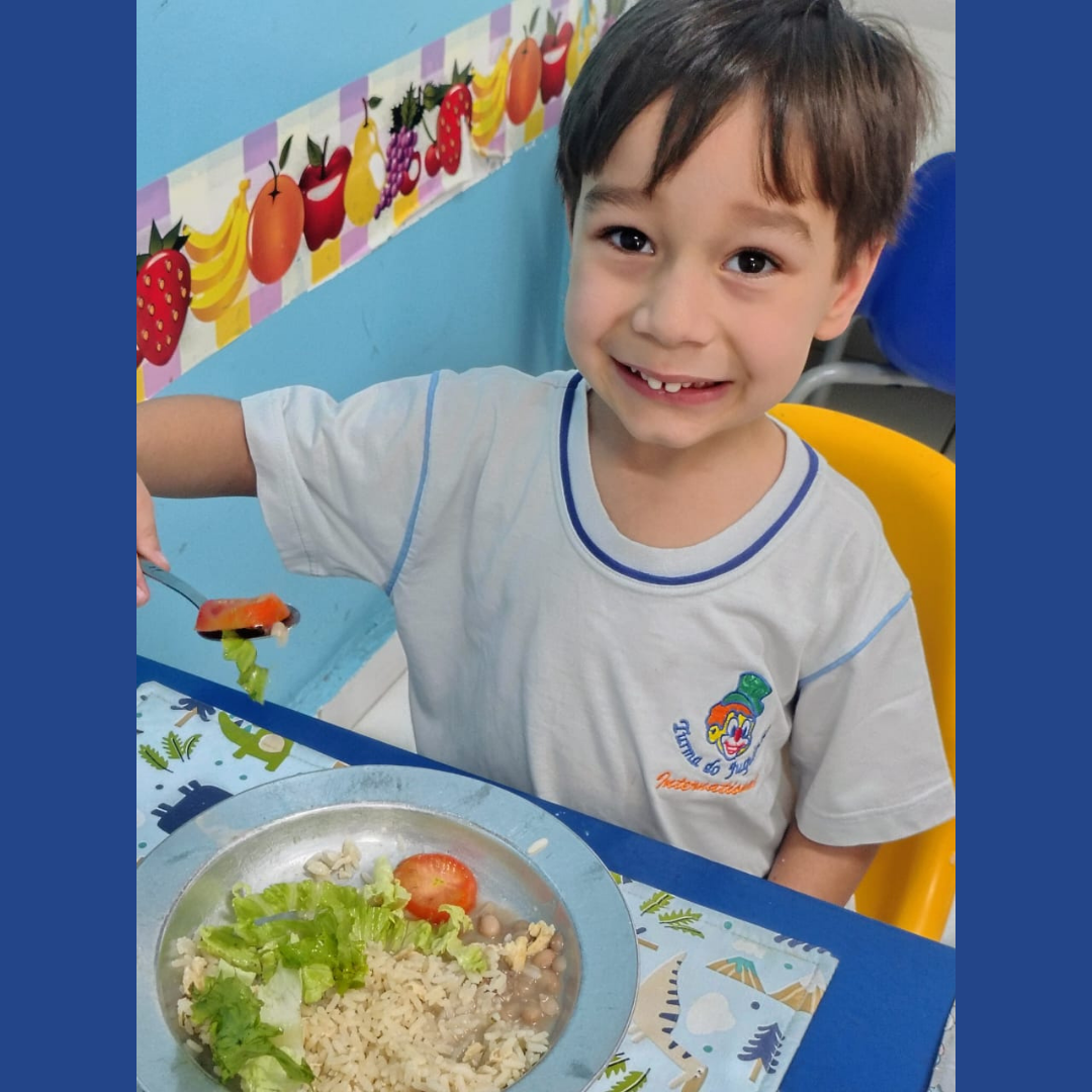 Nosso cardápio é elaborado por uma nutricionista, o que assegura variedade, qualidade nutricional e respeito às necessidades da infância. Trabalhamos com uma proposta diversificada, que incentiva a experimentação de novos sabores, estimula bons hábitos alimentares e promove o prazer de comer bem.